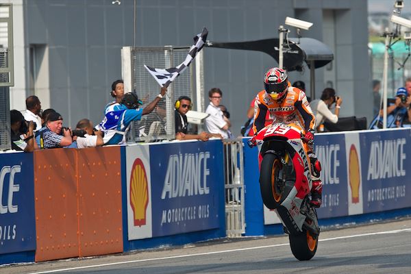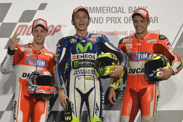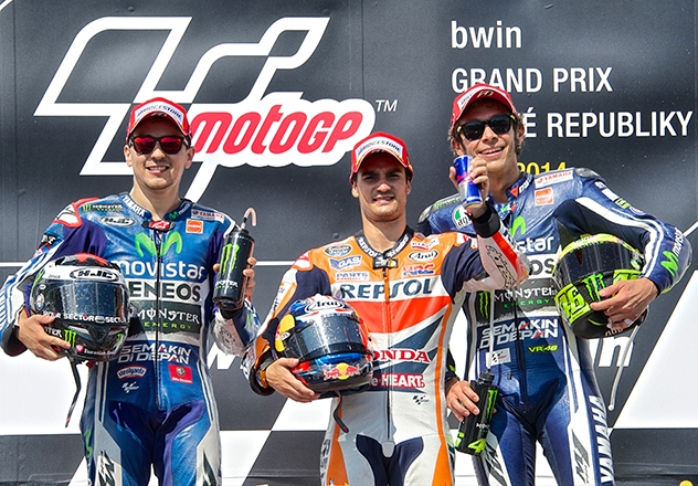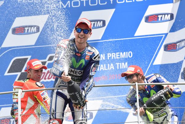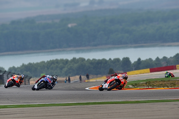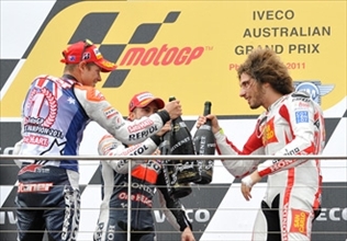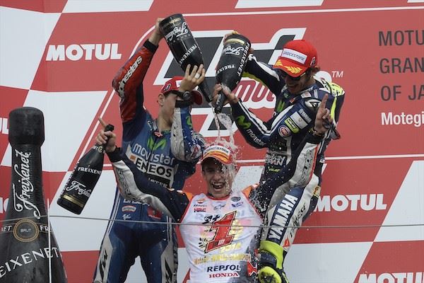 , partito non al massimo ma capace di recuperare nell’arco di qualche giro per poi imporsi davanti al compagno di squadra Pedrosa, 3° Lorenzo finalmente a podio dopo due gare da dimenticare,
