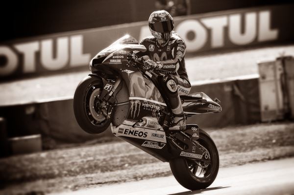 E' stato l'anno del mondiale a Jorge Lorenzo, di Simoncelli per la prima volta su una Moto Gp, e dell'introduzione della gara di Aragona, circuito tra i più spettacolari, anche a livello fotografico. Ma soprattutto è stato l'anno del grave infortunio a Valentino Rossi durante le prove del gran premio d'Italia, che ha costretto il pilota numero 46 a saltare 4 gare per infortunio. Infortunio che nonostante tutto non gli ha precluso il buon terzo posto finale, davanti a Casey Stoner. Tra i protagonisti di questa stagione, da ricordare sicuramente Daniel Pedrosa, secondo in classifica mondiale, pur avendo saltato alcune gare per infortunio. Queste sono alcune immagini di quella stagione.